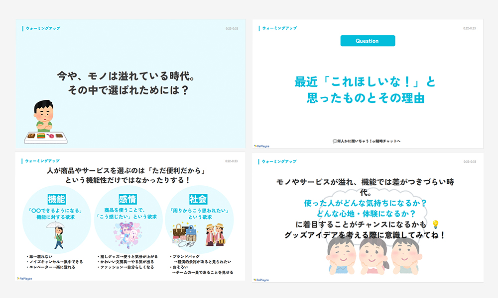 チーム紹介とウォーミングアップを終えると、いよいよ今回のミッションが発表されました。テーマはずばり、「自分たちのアイデアを形にして、実際に販売するまでのプロセスを体験すること」。