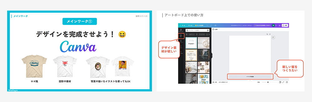 最後に次の授業までにワークシートへアイデアやラフスケッチを記録するという課題と、今回使用する「Canva」というデザインソフトを紹介したところで初回の授業は終了となりました!