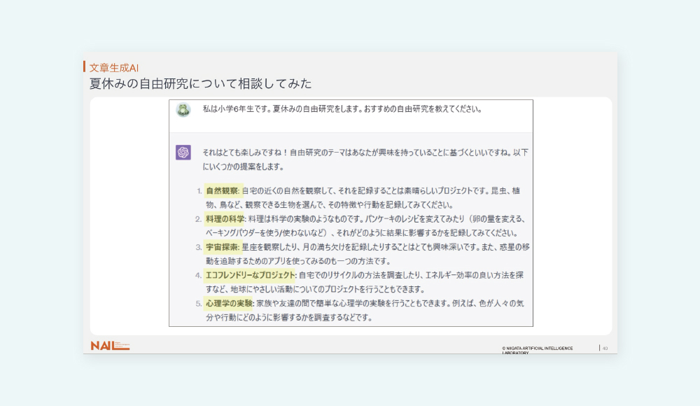 AIのすごさを体験すると同時に、AIにも限界があることも学びます。
