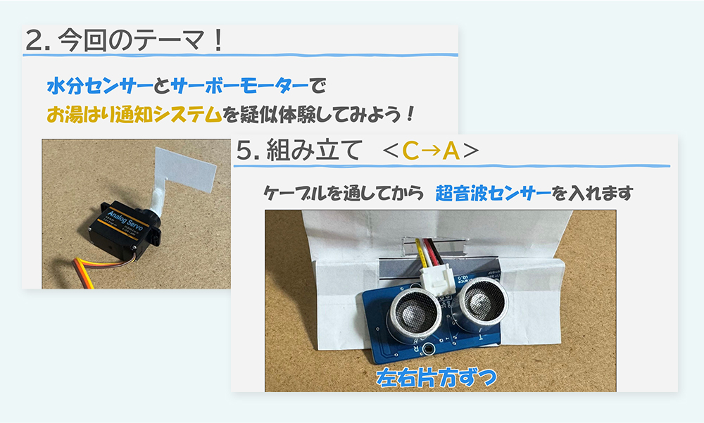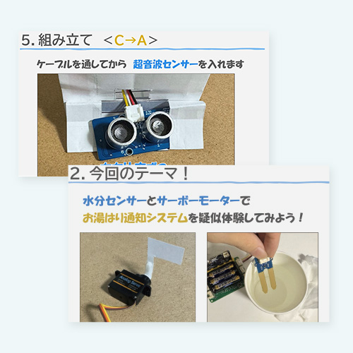 この講座では、実際のセンサーと装置を使い、数値をもとに制御するところまで体験します。