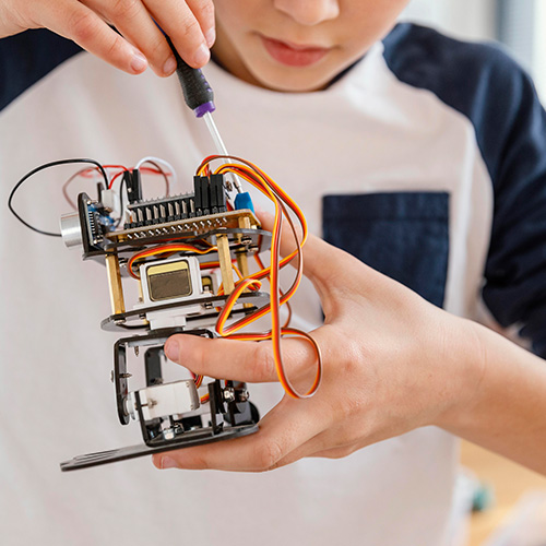 数値を読み取り、条件を設計し、モーターなどを制御するIoTシステム開発を体験します。