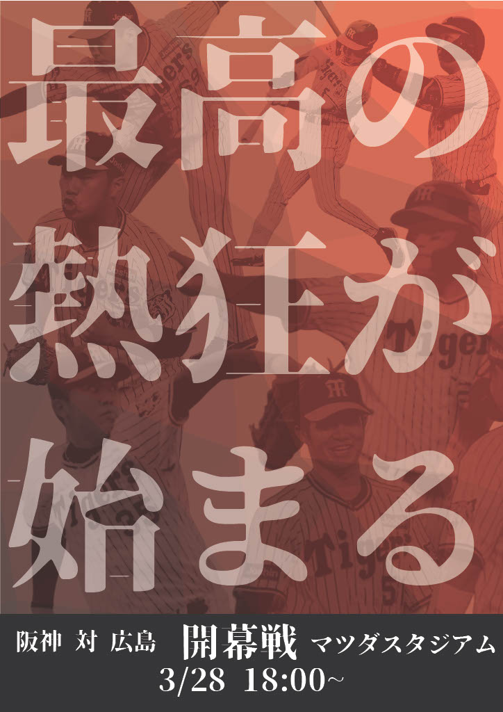 - 「最高の熱狂が始まる」という力強いキャッチコピーで、野球ファンの興奮が伝わってくる作品ですね!文字サイズの強弱で構造化、日時・場所・対戦カードという必要な情報が見やすく整理されていますね。シンプル&インパクトなデザインで、視線移動も自然に上から下へ流れるレイアウトです。