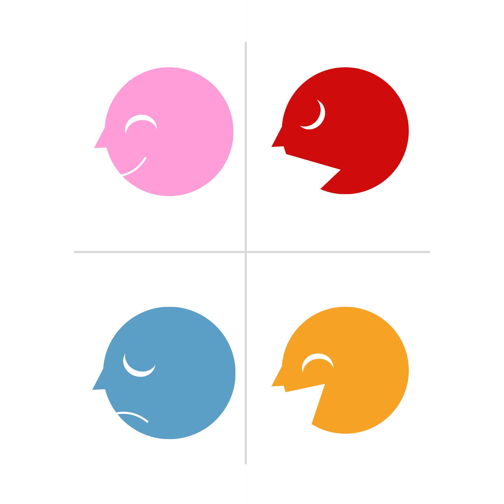 - 4つの人間の感情をカラーリングと図形の組み合わせで表現し、正にその表情を作り出した、非常に洗練された作品です!目の三日月型の図形は全部同じだけど、配置する角度だけでここまで表現できるんですね。「シンプルな図形の組み合わせ」だけで、喜怒哀楽を見事に表現しています!
