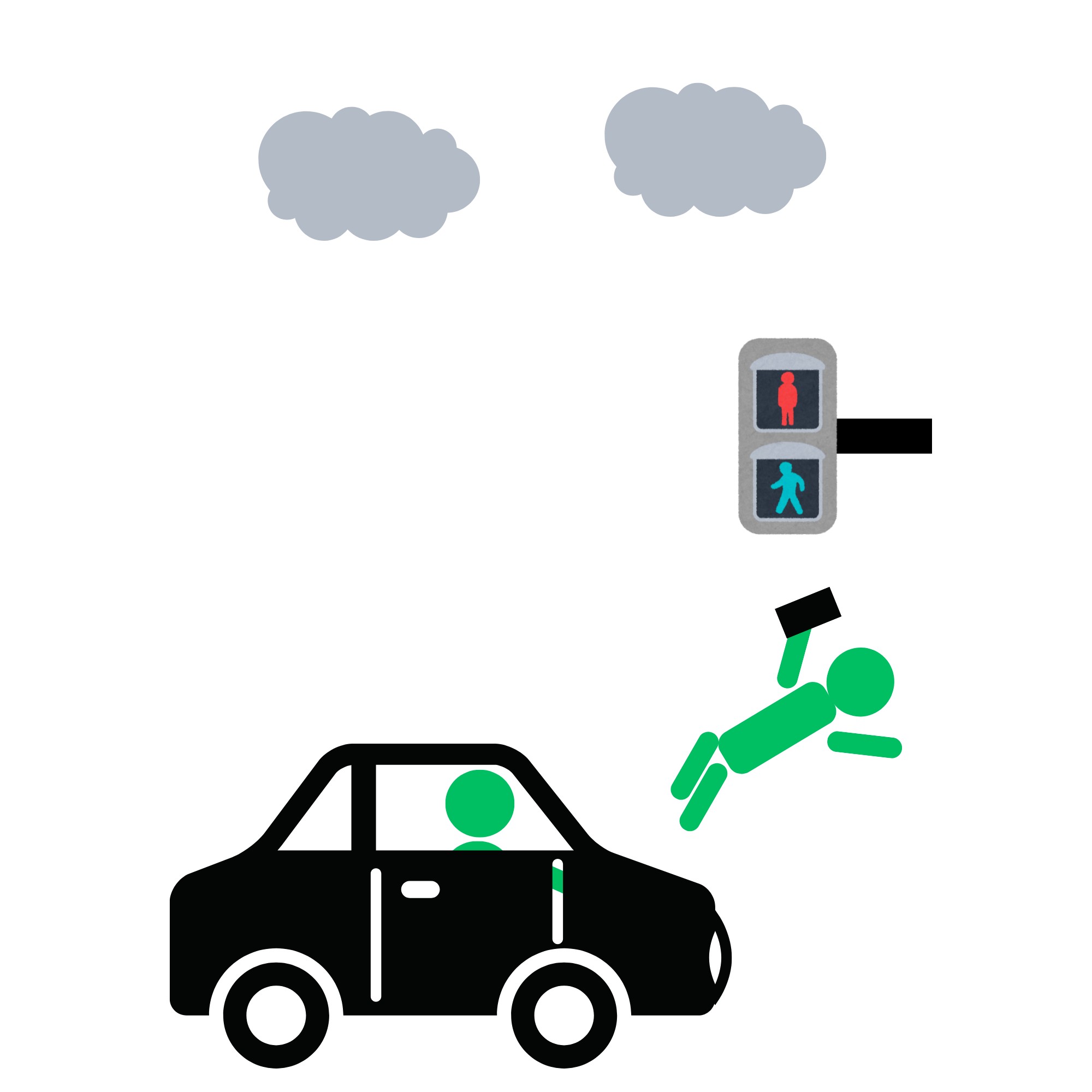 - 歩きスマホの危険性を交通事故という具体的な場面で表現した迫力ある作品です!信号機、車、歩行者を組み合わせて危険な状況を見事に視覚化し、具体的なイメージを抽象化することで、メッセージを力強く伝えています。ストーリー性を持たせたピクトグラムですね!